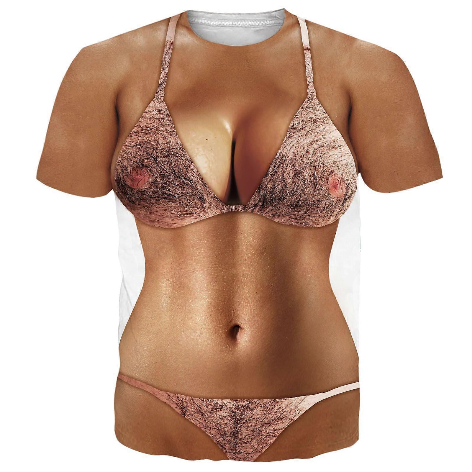 Men's bikini short sleeved T-shirt casual 3D funny creative printed round neck pattern T-shirt