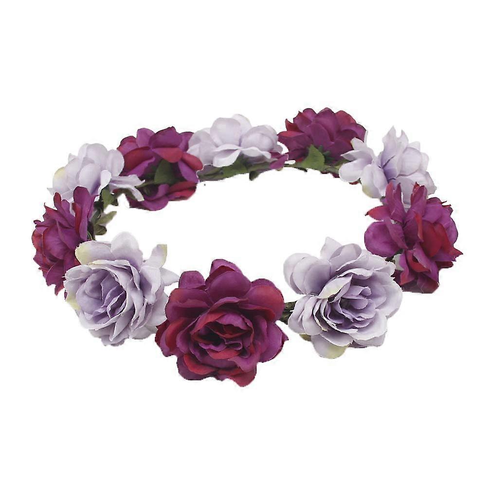 Flower Crown Boho Headpiece with Natural Petals for Wedding Festival Party Blue Purple One Size