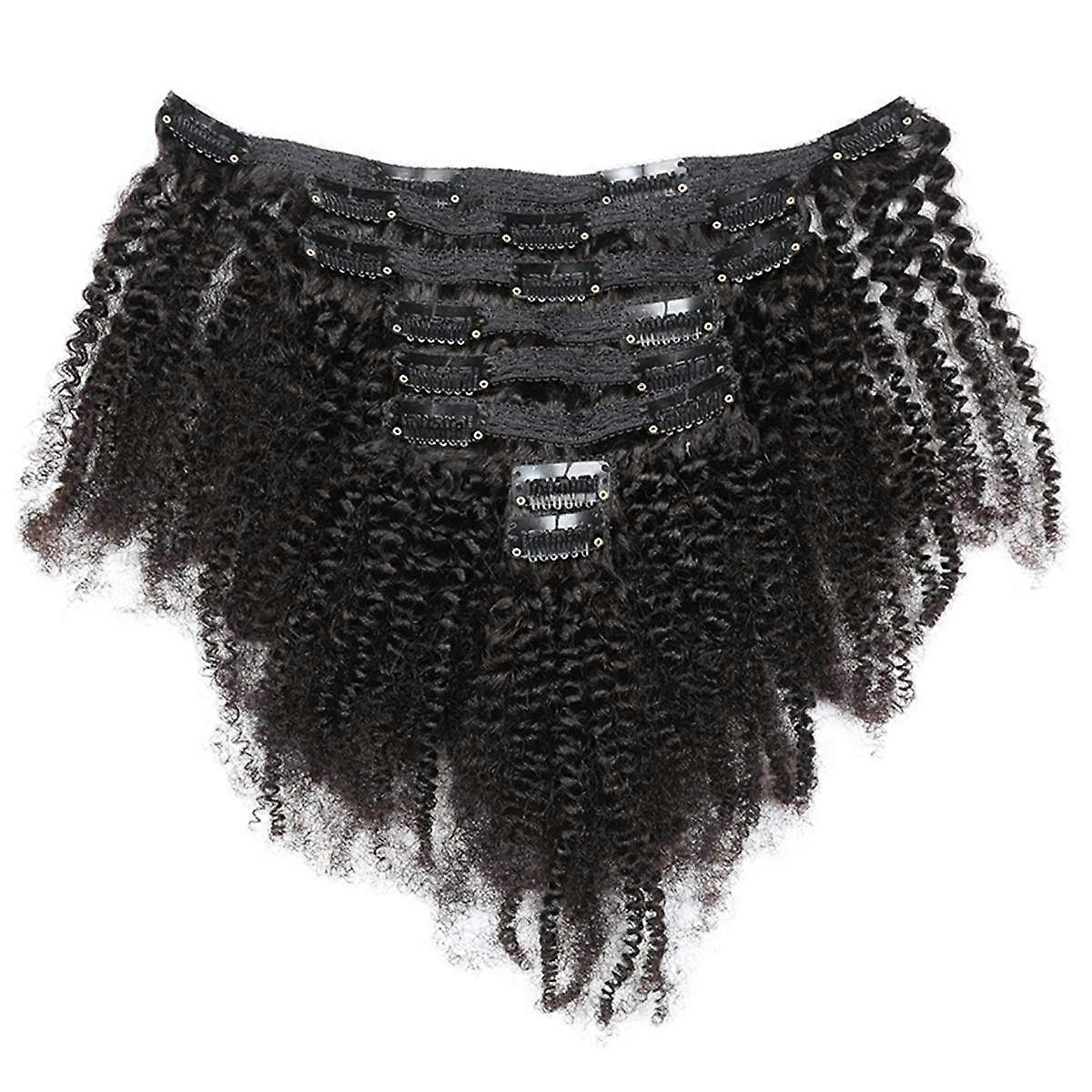 Afro Kinky Curly Clip In Human Hair Extensions for Black Women Bring natural volume, length, and texture in minutes with this 8 piece clip in set made from 100% Brazilian human hair. Designed to match 4B and 4C curl patterns, these 16 inch, 120 gram pieces deliver a full head result without heavy styling or longterm commitment. Key benefits Natural match for 4B and 4C hair textures for seamless blending and authentic look. Instant length and volume with no glue, sewing, or salon appointment required. Reusable and versatile: can be trimmed, heat styled, or colored with professional care. Secure, comfortable clipin application for everyday wear or special occasions. Thick, full head coverage provided by 8 pieces totaling 120 grams. Product highlights Material: 100% Brazilian human hair for realistic movement and texture. Texture: Afro kinky curly, suitable for natural 4B and 4C patterns. Length: 16 inch clip in hair pieces. Weight: 120 grams per set for a full head appearance. Pieces: 8 pieces per set for volume and layering. Grade: 10A quality for consistent curl pattern and durability. Color: Natural color that blends with unprocessed hair tones. How it solves common problems Adds volume and length without chemical treatments or longterm attachment methods. Provides an immediate solution for thinning areas or uneven growth. Lets you experiment with fuller styles while protecting your natural hair from daily heat and manipulation. Practical use scenarios 1) Everyday enhancement: Clip in a few wefts for fuller, naturallooking hair during work or social outings. Blend at the roots and lightly fluff for an effortless finish. 2) Special event styling: Use the full 8 piece set to create a bold, photoready look for weddings, parties, or photo shoots. Style and shape as needed with low heat tools. 3) Protective styling during growth: Wear the clip ins to reduce daily styling stress on your own hair while maintaining a natural textured appearance. Application basics Section hair, align the weft, snap clips into place, then blend with natural hair. Use fewer pieces for subtle volume and all pieces for maximum fullness. Remove gently by opening clips and lifting out to avoid pulling natural hair. Care tips Detangle with a widetooth comb from ends to roots. Wash with mild shampoo and condition; avoid excessive rubbing. Air dry or use low heat when styling to preserve curl definition. Store flat or on a hanger to maintain shape between uses. What you get One set of 8 clip in human hair wefts 16 inch length, 120 grams total weight Afro kinky curly texture matching 4B and 4C natural hair types This clip in set offers a practical, option for adding natural kinky curly volume and length without permanent commitment.