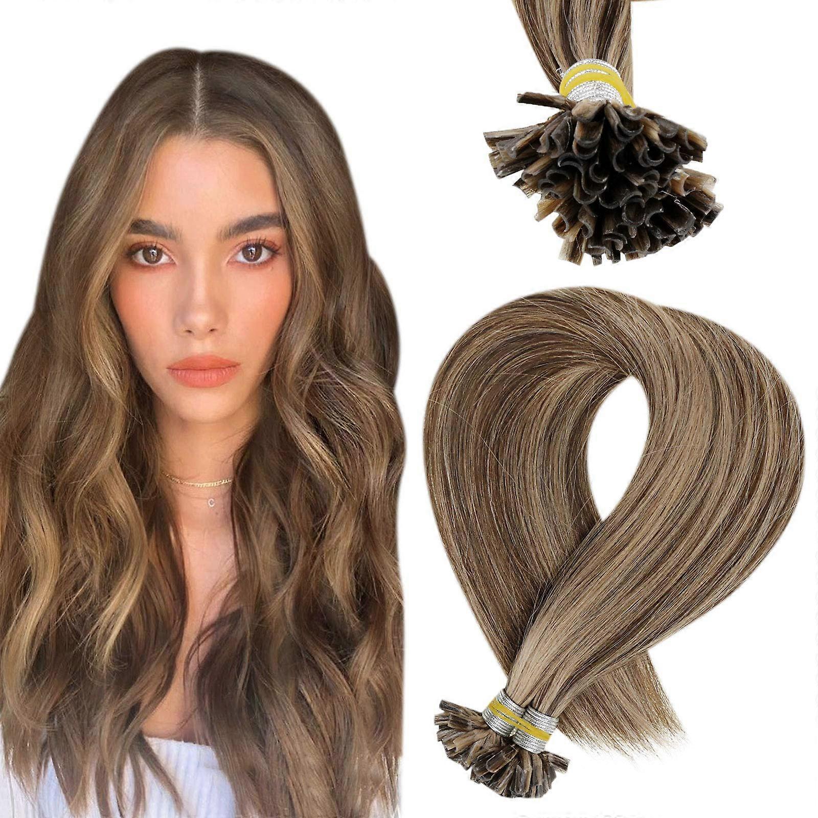 18 Inch Mixed Brown Blonde U Tip Human Hair Extensions Keratin Pre Bonded Remy Hair Natural