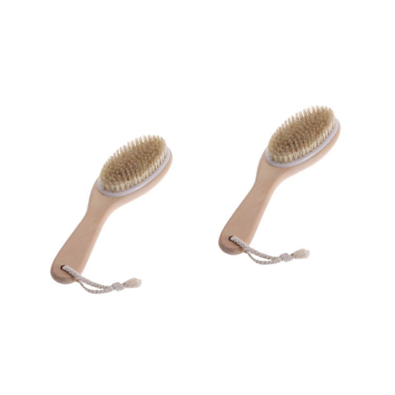Bath Brush Set with Wooden Long Handle for Back Scrubbing and Effective Skin Exfoliation