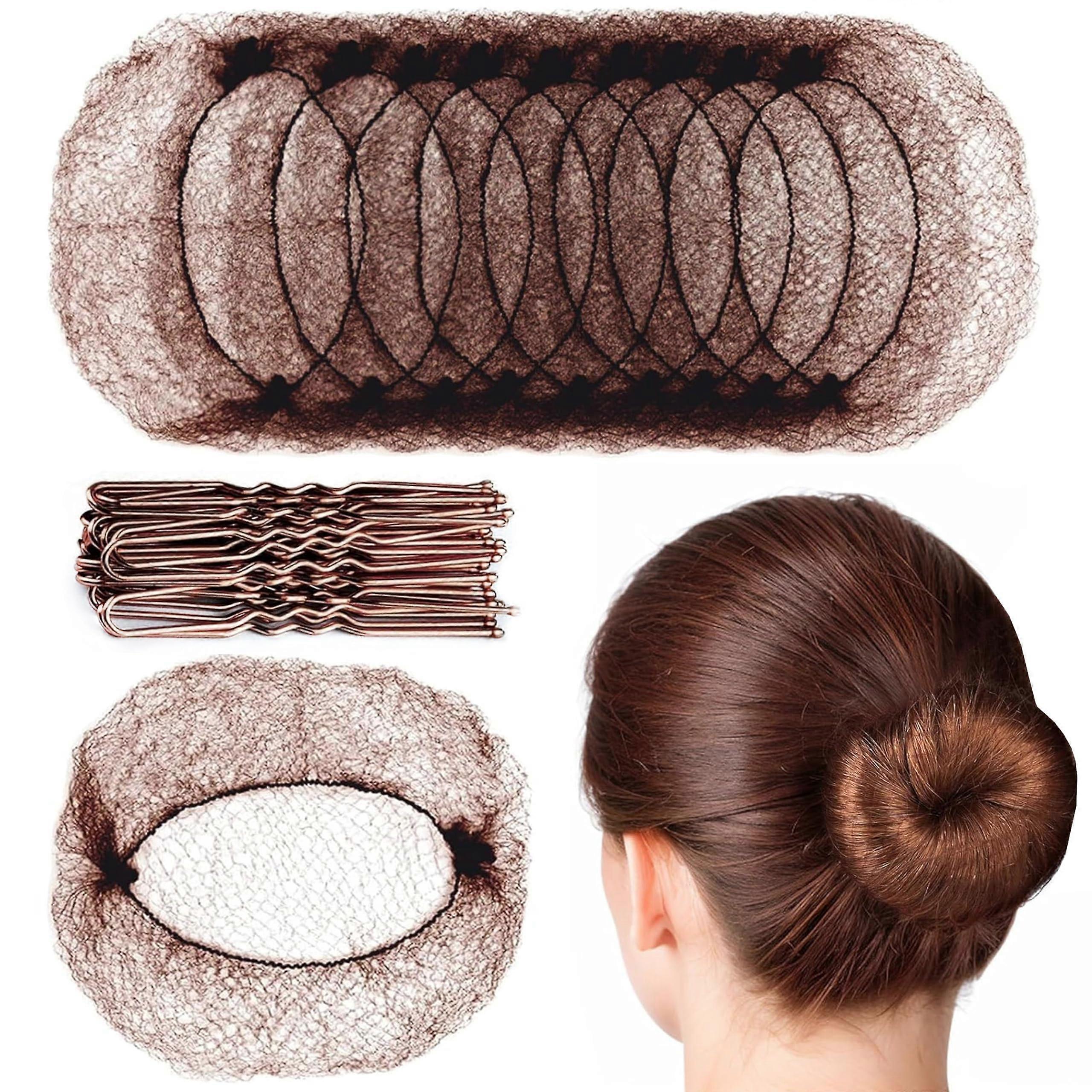 Hair Bun Maker Set with 50 Invisible 20 Inch Mesh Hair Nets and 50 RustResistant U Pins for Bun Styling