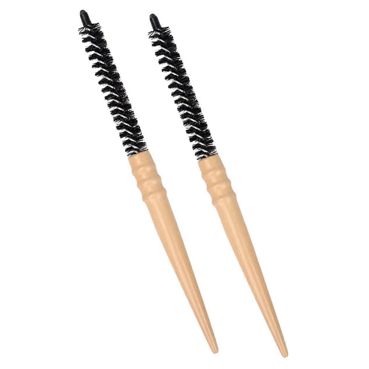 Round Hair Brush with Boar Bristles for Curly Hair Blow Drying, Small Wooden Travel Size