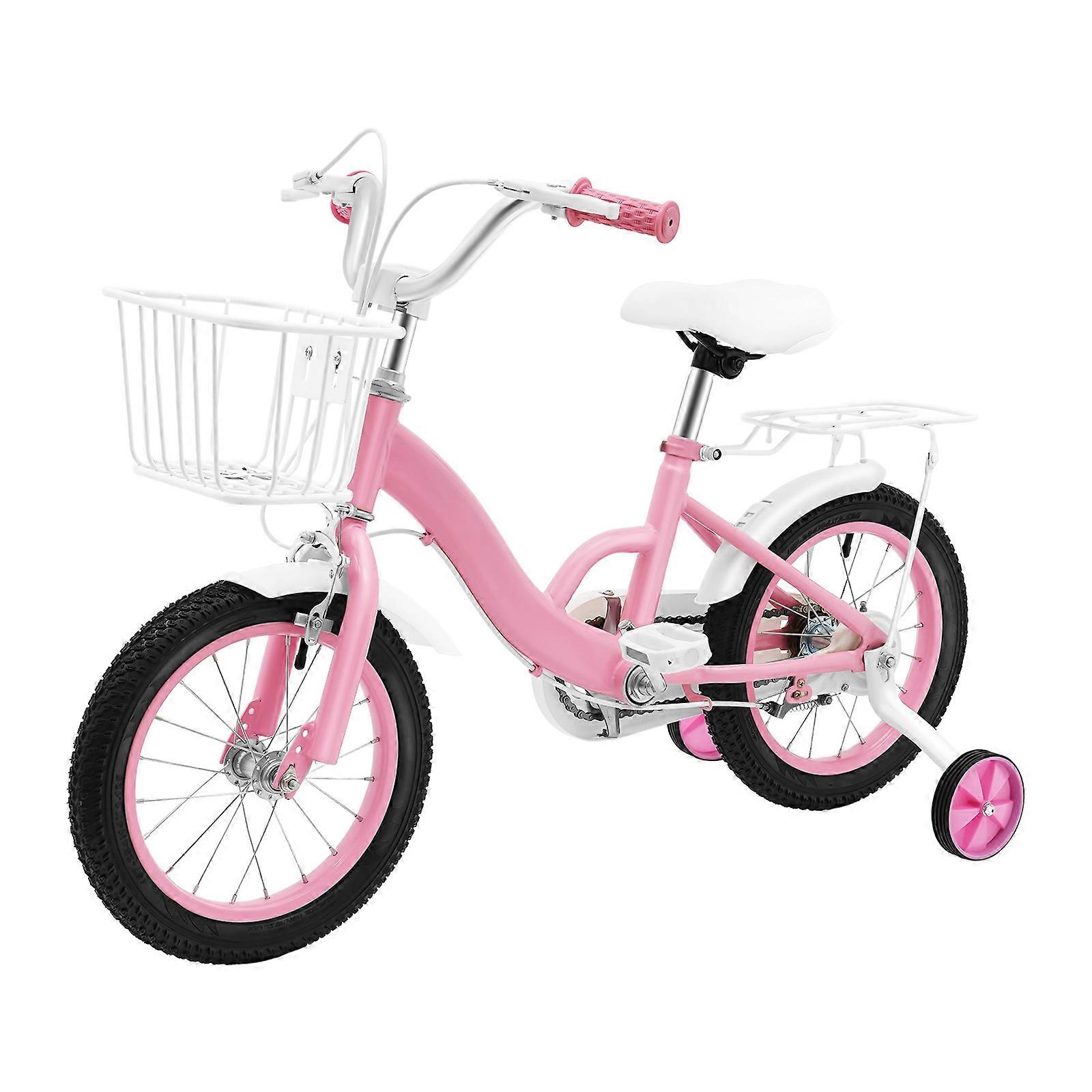 This 14-inch bike is made of high-quality high-carbon steel with the spraying process, which is strong and long-lasting. Its braking system, auxiliary wheels and safety guards ensure your child's riding safety. The comfortable cushion and adjustable seat height fit most kids. Come and bring it home and let it ignite your kids' passion for riding and propel them to a happy future! Key Features 1.Build to Last: It is made of high-quality high-carbon steel with the spraying process, making it corrosion-resistant, anti-aging, and wear-resistant, so it can withstand the test of time well. 2.Safety Guard: Front and rear braking system and handlebar edge protection ensure children's safety during riding, and the short grip bar is effective for quick braking. The enclosed anti-skid chain and anti-skid pedals protect children from injury and provide a safer pedaling environment. 3.Thoughtful Design: The ergonomic seat provides an excellent and comfortable driving experience for kids. The non-slip rubber tires provide better grip and ensure a comfortable ride. 4.Riding Assistant: The auxiliary wheel can be mounted optionally as required, allowing kids to learn to balance while providing a high degree of stability during sharp turns, which allows kids to learn to ride quickly with a greater sense of security. 5.Adjustable Height: You can adjust to the right cushion height within 3.94in inches according to your child's height and habits for a more comfortable riding experience. 6.Strong Load Capacity: The stable frame, triangular structure, and firm screw connection make the product have a load capacity of 55.12lbs, which makes you feel more at ease when you use it. 7.Assembly in a Breeze: The complete range of installation accessories and the simple structure allow you to assemble it in a short time. 8.Easy to Maintain: Thanks to the smooth surface and simple structure, you can easily wipe off the dirt on it with a soft cloth(not included).  Details ●Useful Basket: You can put your belongings in the basket for a more convenient ride. ●Chain Cover: It prevents pant legs from getting caught in the chain, protects children from riding safely, and protects the chain for a long lifespan. ●Practical Fenders: The front and rear fenders protect your child and bike from mud splash when riding on muddy roads to a certain extent. Application It is suitable for children aged 3 years and older and 39.37in tall, and can be used for recreation or training rides around town and on bike paths. Specifications Color: Pink Style: Modern Material: High-carbon Steel, Rubber Process: Spraying Assembly Required: Yes Bike Type: Kids Bike Brake Type: Front Clamp Brake, Rear Holding Brake Suitable Age: Above 3 Years Old, Height 100cm/39.37in Load-bearing Capacity: 25kg/55.12lbs Gross Weight: 8kg/17.64lbs Cushion Adjustable Height: 10cm/3.94in Wheel Diameter: 35.56cm/14in Cushion Height from the Ground: 50-60cm/19.6-23.6in Product Size(L*H): 104*75cm/40.9*29.5in Package Size: 82*41*19cm/32.28*16.14*7.48in Package Included 1*14-inch Bike All Accessories for Assembly