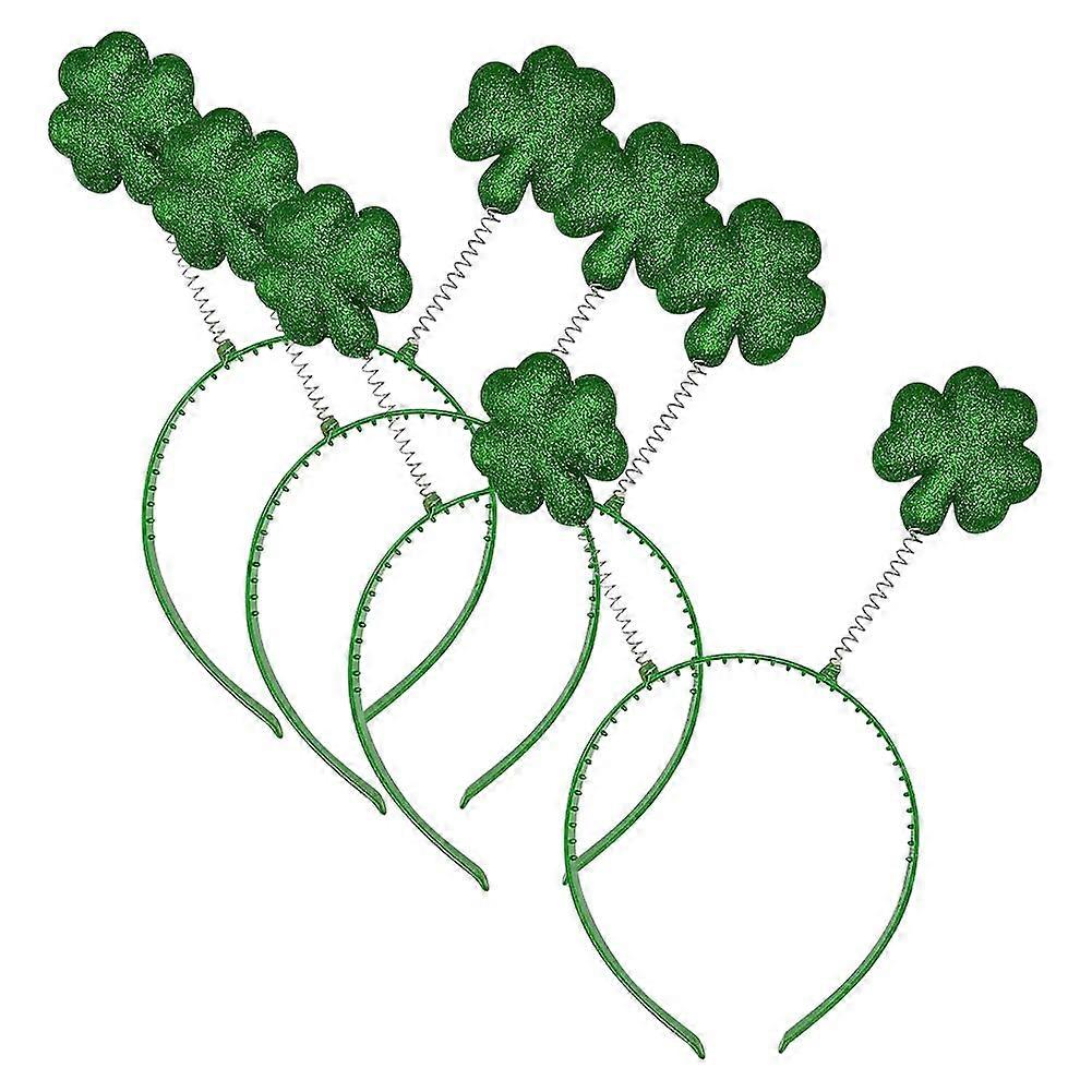 4 Pcs St Patrick's Day Headbands with Glitter Shamrocks Green Irish Clover Hair Accessories for Party
