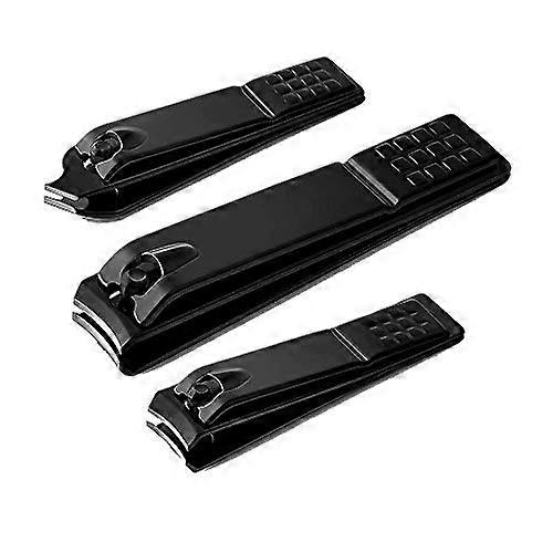 Nail Clippers Set Stainless Steel with Precise Blades and AntiSlip Grip for Thick Nails, 3pcs Black