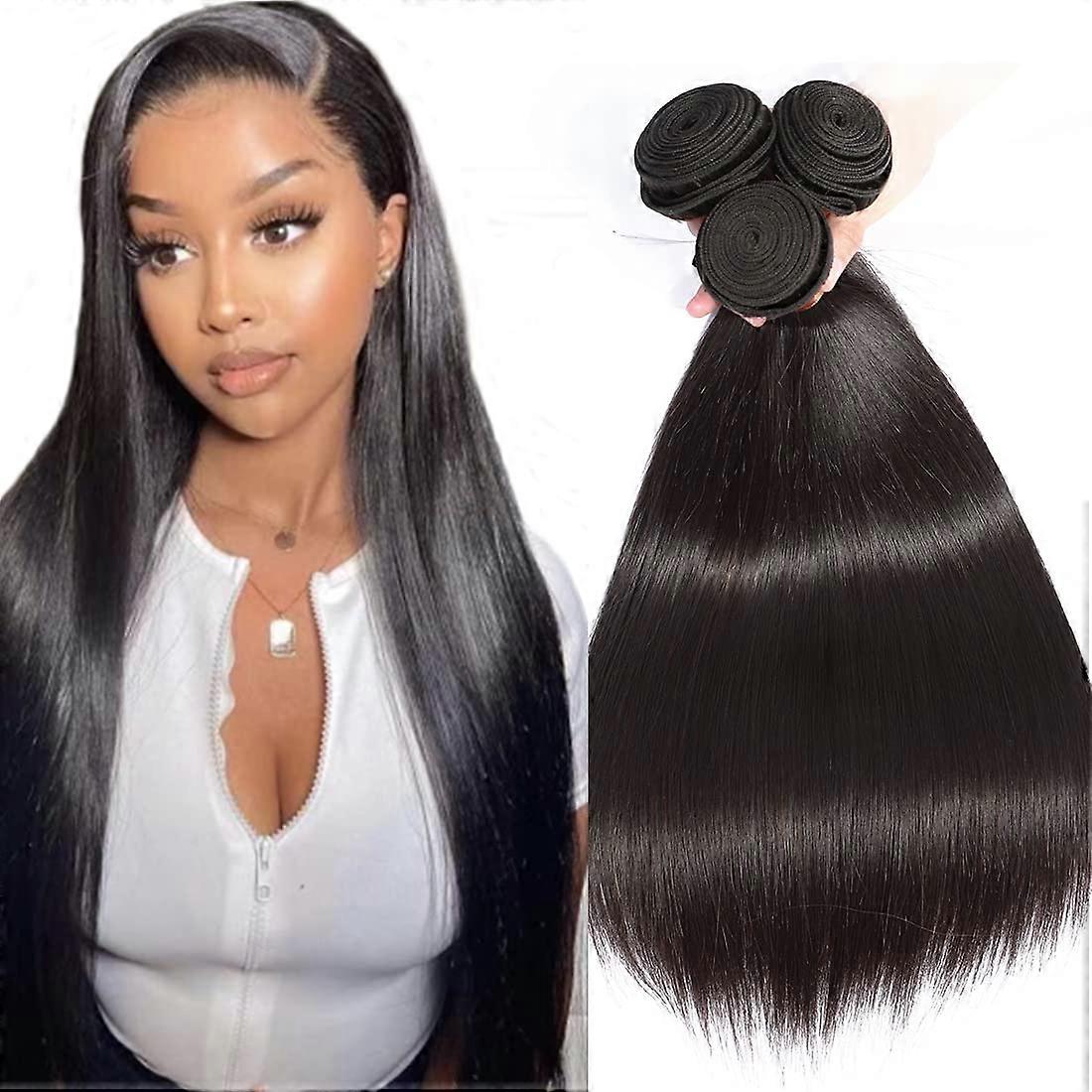 Brazilian Straight Hair 4 Bundles 16 Inch Virgin Human Hair Weave Extensions Natural Black
