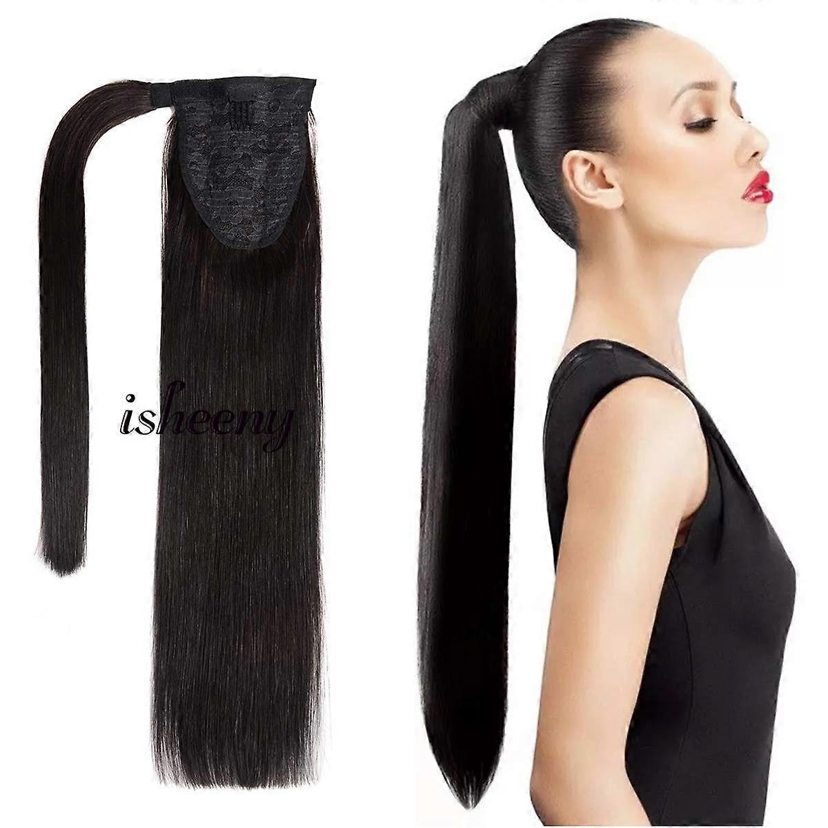 Human Hair Ponytail Extension 16 Inch Wrap Around Clip In Remy Hairpiece Black Natural Volume