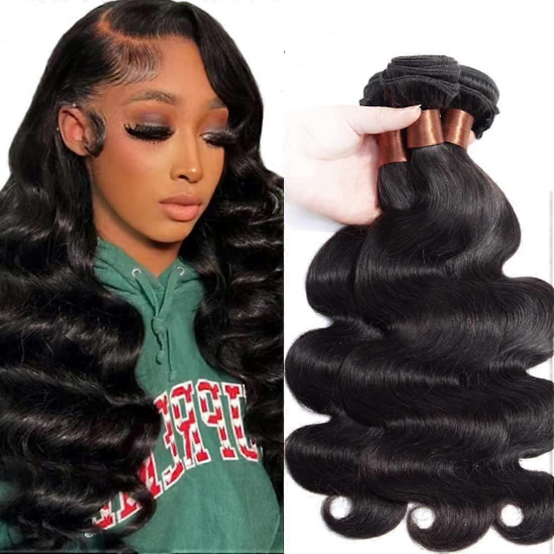 Virgin Human Hair Bundles Indian Body Wave Extensions Natural Black Dyeable Tangle 3pcs 18in