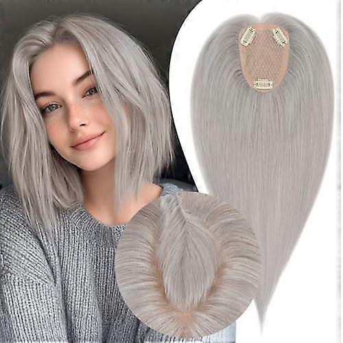 Light Gray Human Hair Topper for Thinning Hair Women, 14 Inch Lace Base with Natural Scalp Look