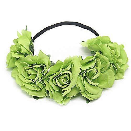 Handmade Rose Flower Crown with Adjustable Floral Headband for Women Wedding and Festival Green