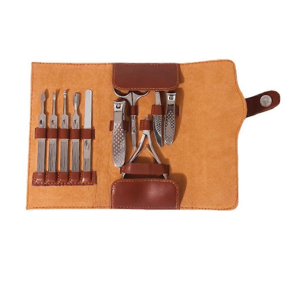 Brown Vintage Manicure Set with Ergonomic Nail Clippers for Precise Trimming and Travel