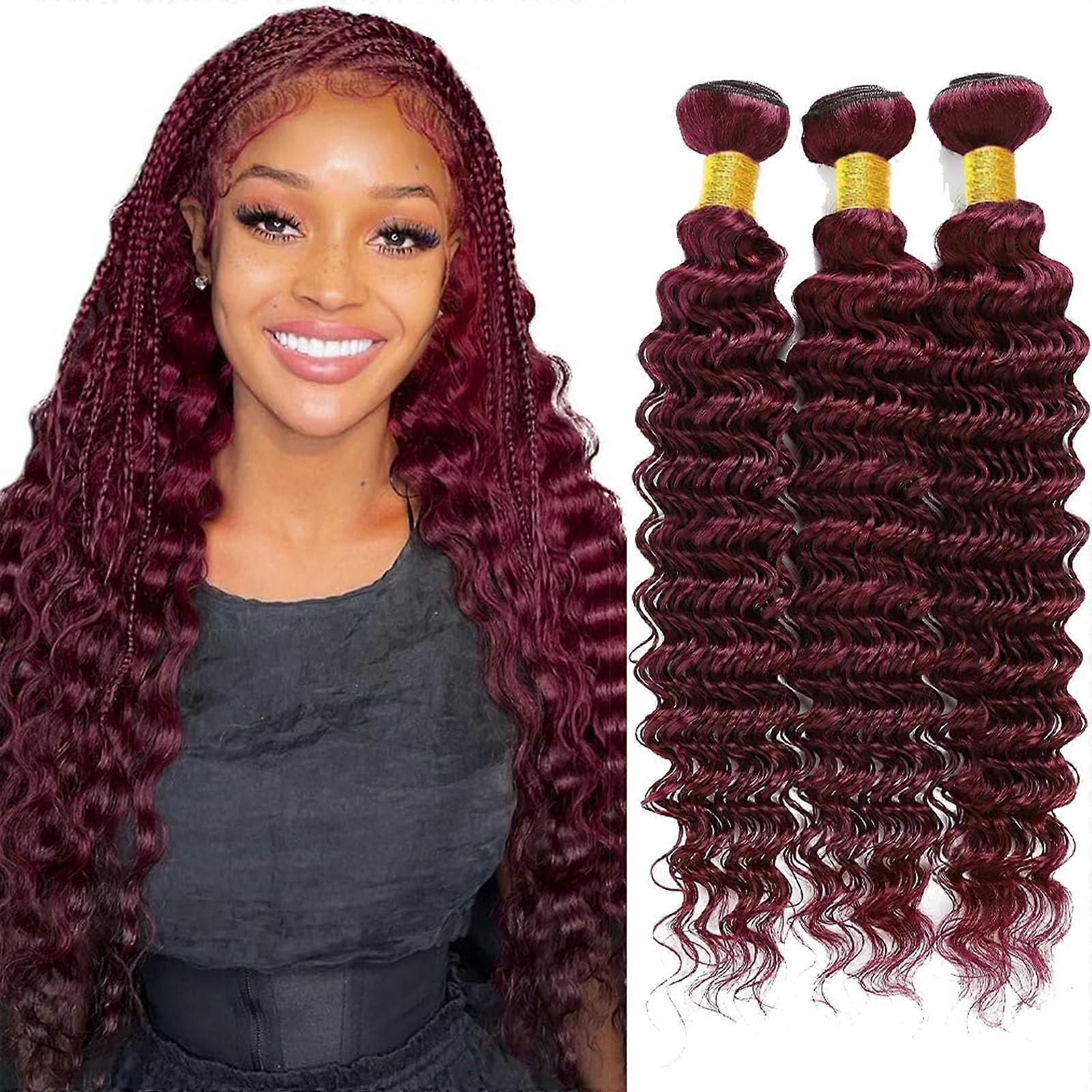 Burgundy Human Hair Bundles 99J Brazilian Deep Wave Extensions Unprocessed Virgin Tangle
