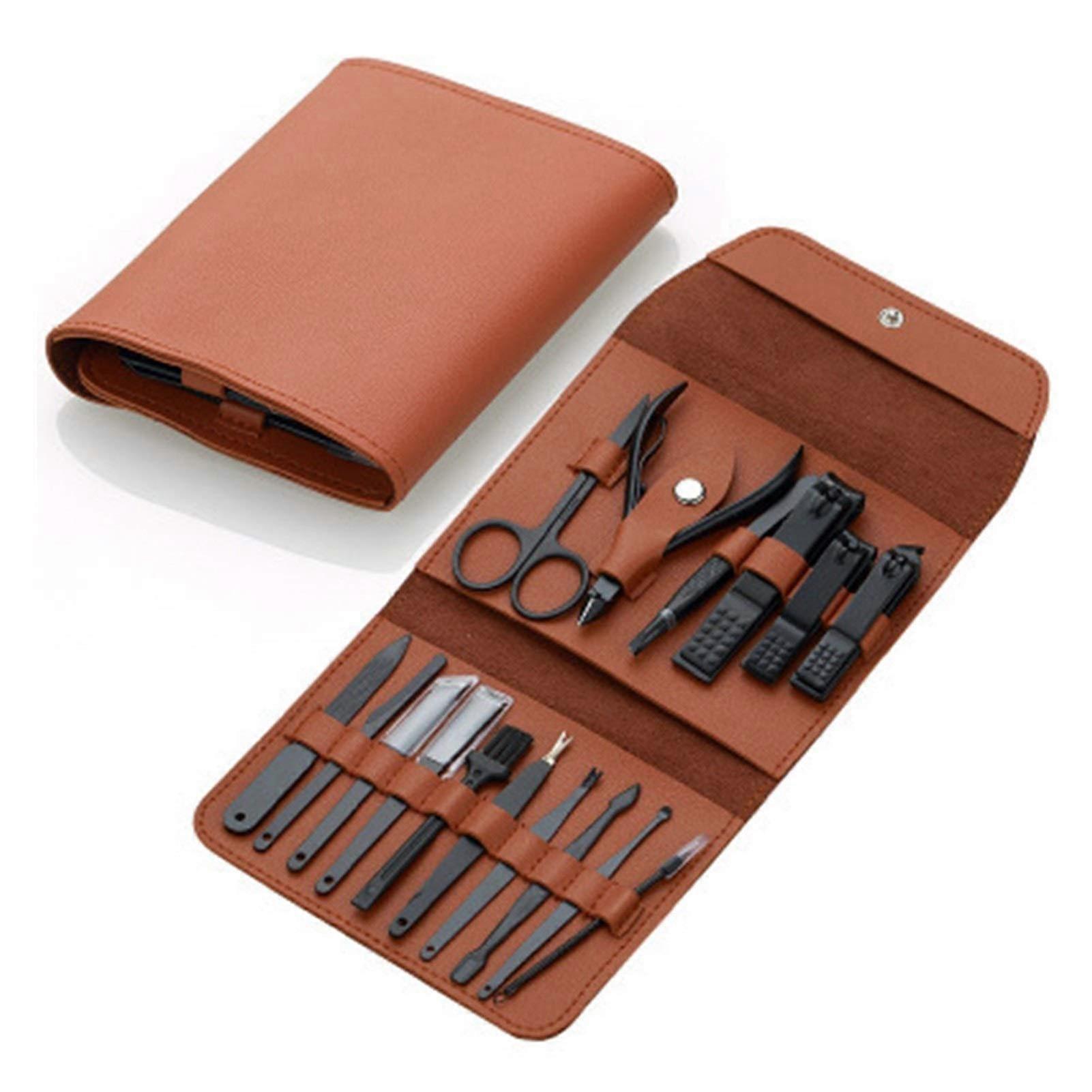 Professional Manicure Pedicure Set 16pcs Stainless Steel Nail Clippers Grooming Kit with Leather Case