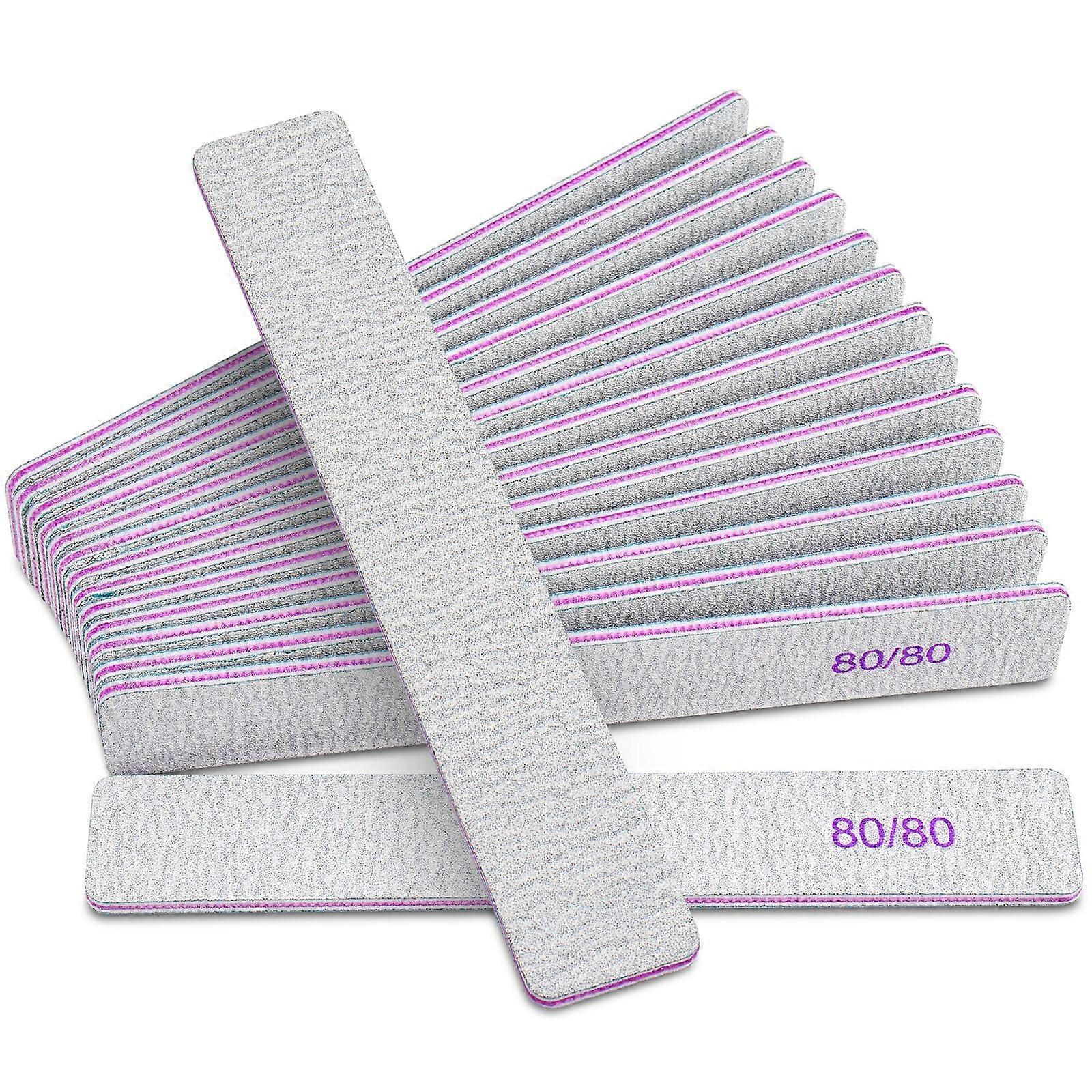 15piece pack of doublesided 80/80 grit nail files designed for both natural and false nails. These rectangular files combine sandpaper, ECO sponge and PP board for a sturdy, comfortable filing experience and longlasting reuse. Key benefits Fast shaping and smoothing: 80/80 grit on both sides lets you quickly trim, shape and polish nail edges and surfaces. Durable construction: quality emery sandpaper bonded to an ECO sponge and rigid PP board creates a thick, stable file that resists bending during use. Comfortable handling: Rectangle shape and 0.18 inch thickness provide a secure grip and better control for even filing. Easy to clean and reuse: Rinseable with water for simple maintenance and repeated use. Versatile use: Suitable for manicure, nail shaping, nail care, nail styling and nail polishing for both home and professional settings. Specifications Material: Sandpaper, ECO sponge and PP board Design: Rectangle shape, doublesided Color: Zebra and Purple Sandpaper grit: 80/80 grit Size: 178 x 28 mm (7 x 1.1 inch), thickness 0.18 inch Package contents: 15 x 80/80 nail files Use scenarios Home manicure: Quickly reduce length and refine edges on natural nails before applying polish or nail oil. Salon prep: Shape and file false nails, tips and extensions to achieve consistent lengths and smooth transitions. Onthego touchups: Keep a compact set in a kit or bag for fast edge smoothing and maintenance between appointments. Practical, reliable and easy to maintain, this pack provides a consistent filing surface for routine nail care and styling.