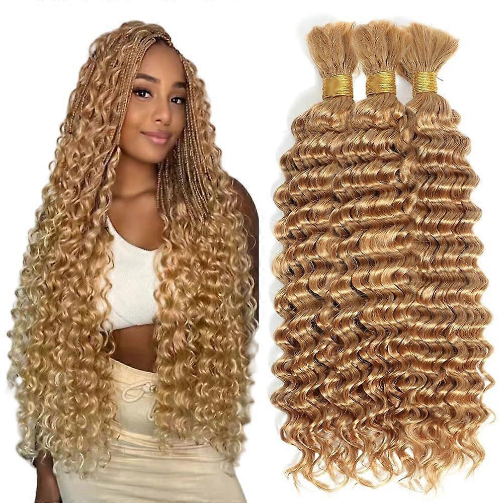 16 Inch Honey Blonde Deep Wave Human Braiding Hair Extensions Brazilian Virgin Bulk for Boho Braids 3 Bundles