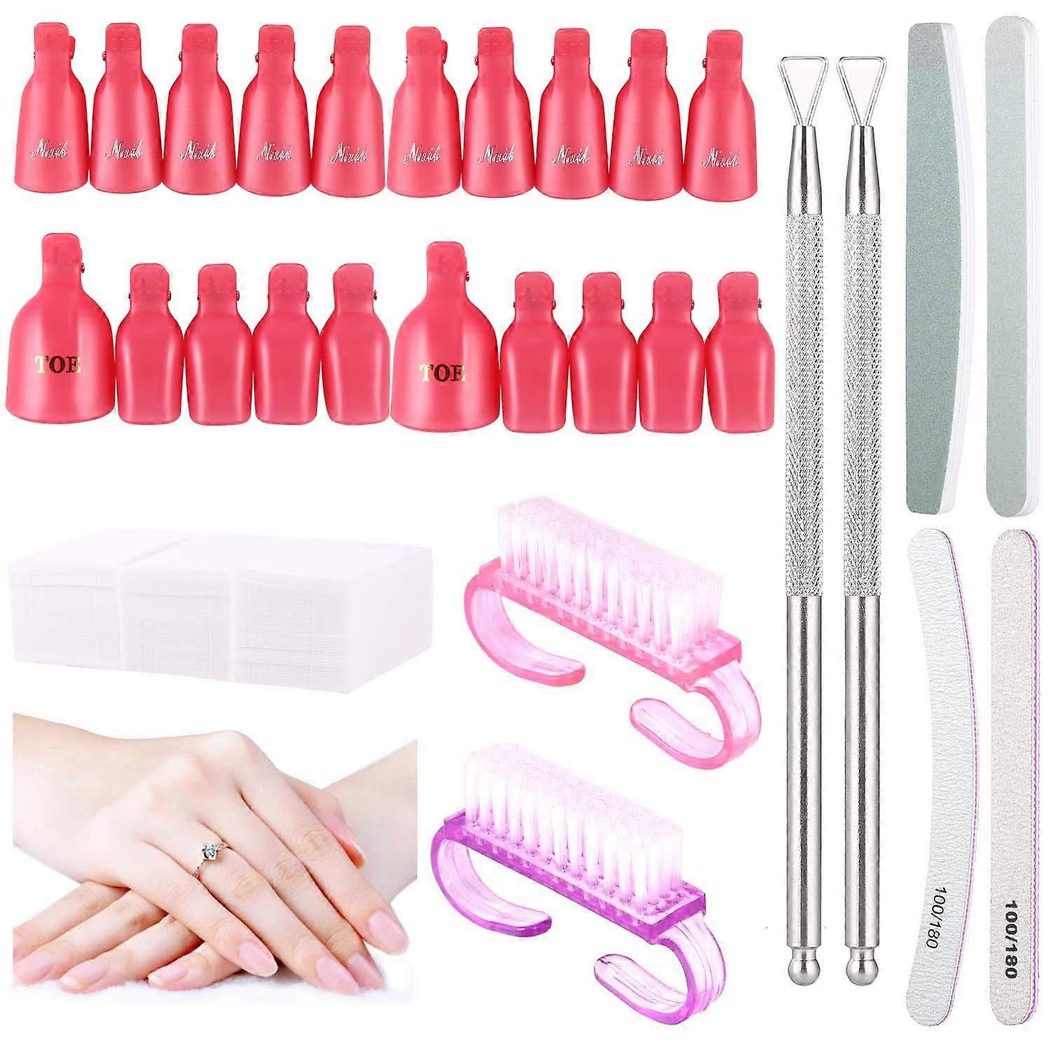Gel Nail Polish Remover Kit with Clips, Pads, Cuticle Scraper, Nail Files, Buffer and Brush Pink