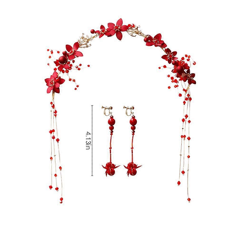 Bridal Floral Headband and ClipOn Earrings Set for Wedding Bride Elegant Handmade Flowers Red