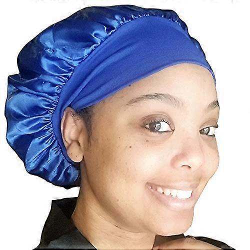 Royal Blue Satin Bonnet with Secure Wide Elastic Band, Polyester Silk Sleep Cap for Women