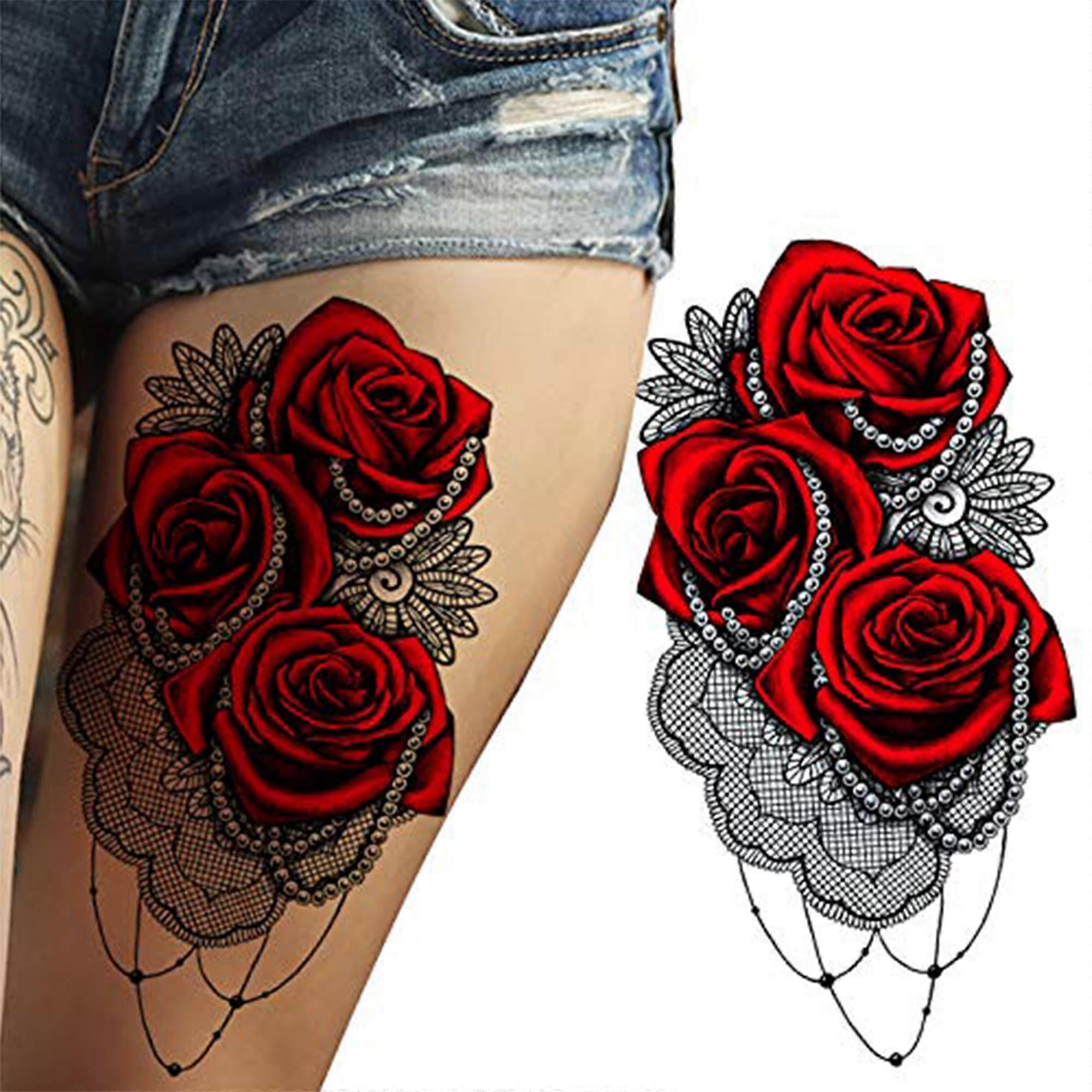 Red Rose Temporary Tattoos for Women, Waterproof Realistic Floral Body Art for Arm Legs Cosplay Parties