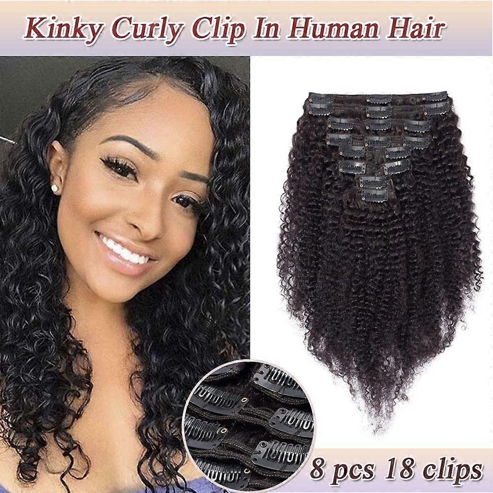 Kinky Curly Clip In Hair Extensions 8 Inch Afro Brazilian Remy Human Hair Natural Black 18 Clips