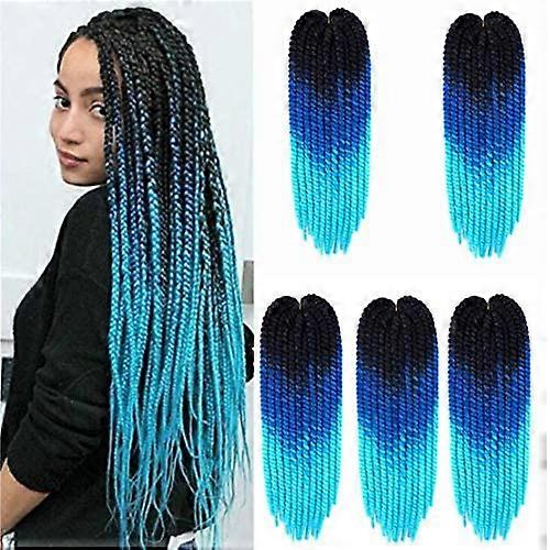 Passion Twist Hair 5 Packs 22 Inch Ombre Black Blue Spring Twist Crochet Braiding Extensions