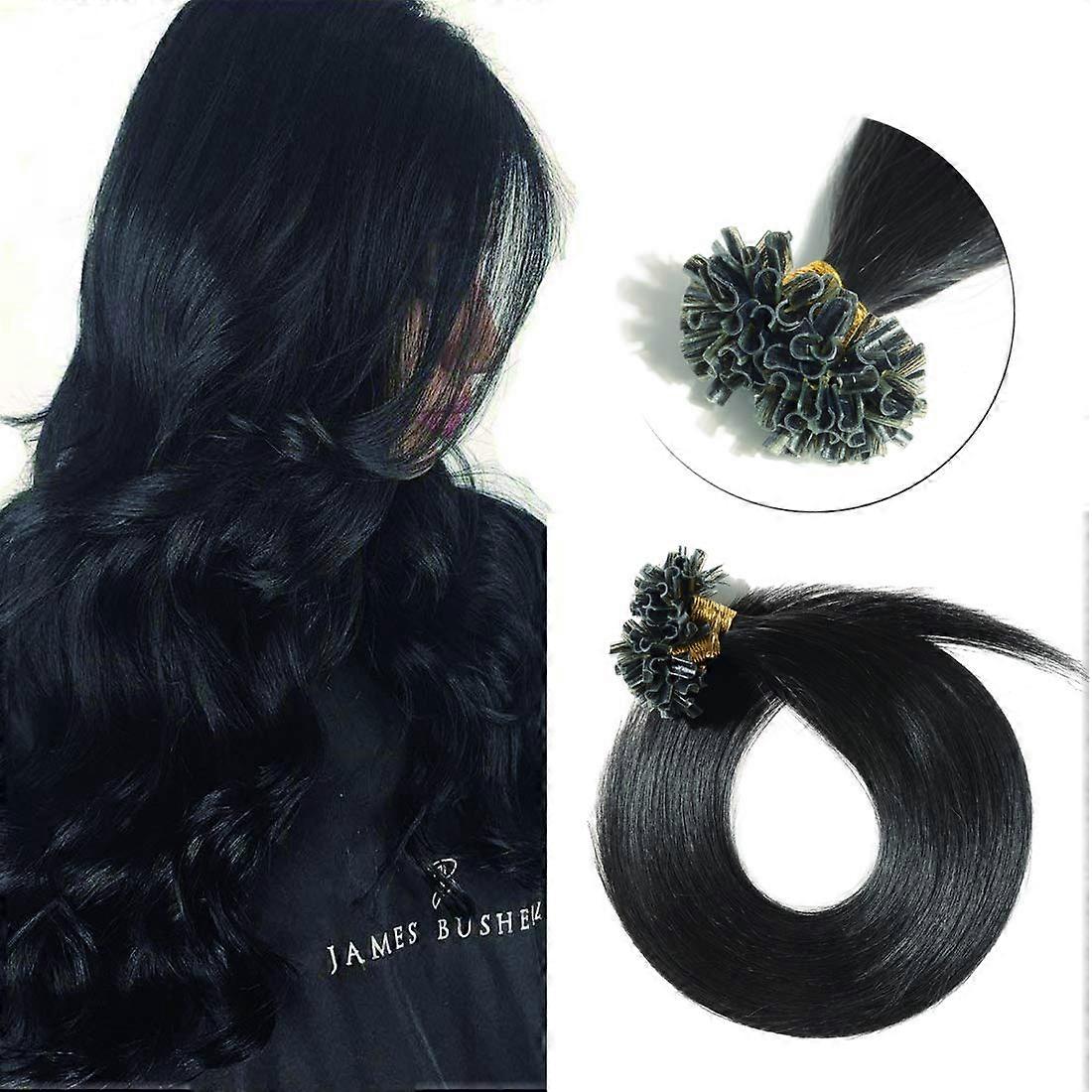 Human Hair Extensions 18 Inch Natural Black Remy Prebonded Keratin U Tip Silky Straight 100 Strands