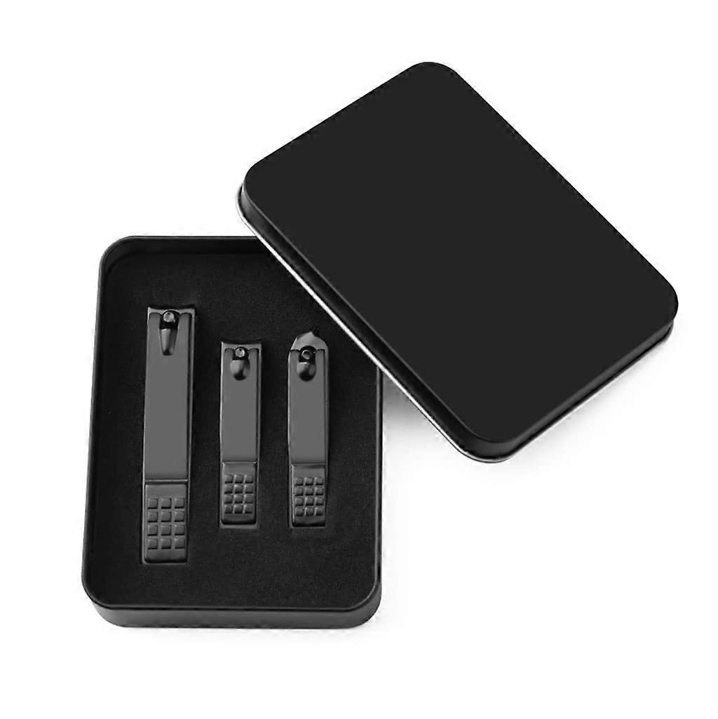 Nail Clippers Set with Ergonomic NonSlip Grip, 3 Piece Manicure Pedicure Kit in Black Stainless Steel Case