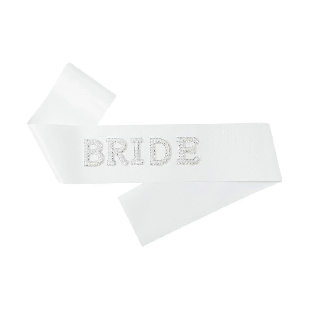 Pearl Rhinestone Bridal Sash with White Satin for Bride to Be Wedding and Engagement Party