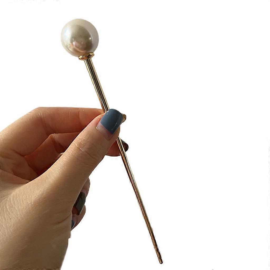 Metal Hair Stick with Pearl Accent for Secure Bun Updo and Thick Hair Styling