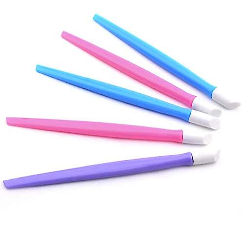 Dualtipped Nail Cuticle Pushers, 10 Pack Description These dualtipped nail cuticle pushers combine a plastic handle with two different tip types to support basic manicure tasks. One tip has a soft rubber end for gentle pushing and finishing, while the opposite tip is a firm point for scraping and exfoliating the nail surface. The tools are lightweight, durable, and designed for everyday nail maintenance. Key benefits Two functional tips in one tool: rubbertipped end for gentle cuticle pushing and a firm point for cleaning under the nail and light exfoliation. Durable construction: plastic handle and sturdy tips resist breakage during regular use. Compact and portable: 9.7 cm length fits easily into a manicure kit, travel bag, or salon pouch. Gentle on nails: designed to be used with care to avoid damage to the nail plate or surrounding skin. Economical set: 10 pieces provide spare tools for home use, professional stations, or group sessions. Specifications Material: Plastic handle with rubber and firm tips Length: 9.7 cm each Color: Purple, pink, blue (colors supplied at random) Quantity: 10 pieces per pack Package contents: 10 x nail cuticle pusher Typical uses Home manicure: Push back cuticles and clean along the nail edge before applying polish. Professional or mobile services: Keep extra tools on hand for client appointments and quick touch ups. Travel and touch ups: Slip one into a travel kit to maintain nail appearance between full treatments. Usage notes Use the rubbertipped end to push back cuticles gently and the firm point to remove debris from under the nail or to refine the nail edge. Apply gentle pressure and work slowly to avoid excessive force. Clean and store tools after use.