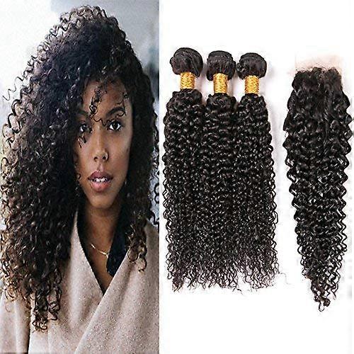Brazilian Kinky Curly Virgin Human Hair Bundles With 4x4 Lace Closure 14 16 18+10 Inch Natural