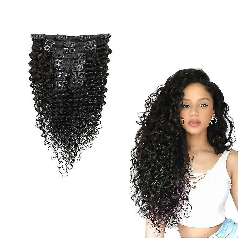 Curly Clip in Hair Extensions Black Human Hair Deep Water Wave 18 Inch Natural Look