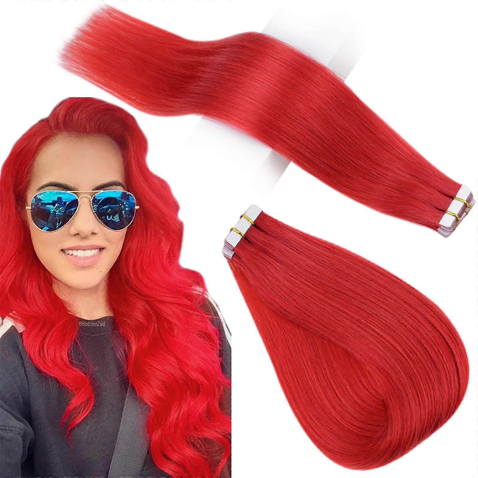 Tape in Human Hair Extensions 22 Inch Red Real Human Hair Instant Length and Natural Hairline Blend