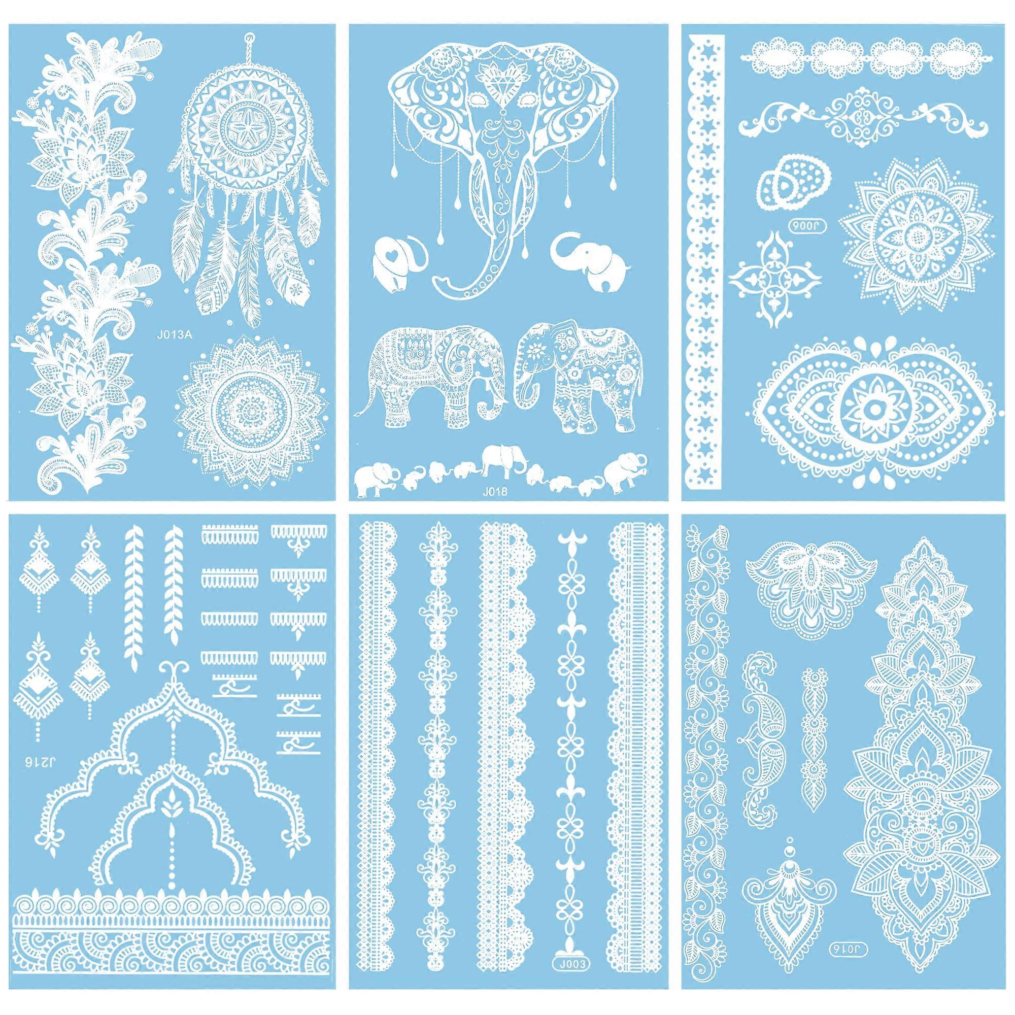 6 Sheets Temporary Tattoos for Women, Waterproof Lace and Henna Style Flash Tattoo Stickers for Wedding Party