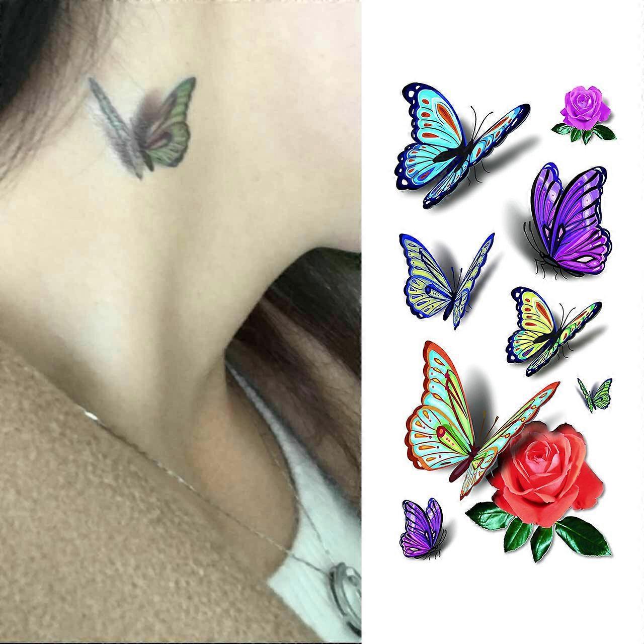 Realistic 3D Butterfly Temporary Tattoo Stickers Waterproof Blue Purple Yellow Rose 2 Sheets