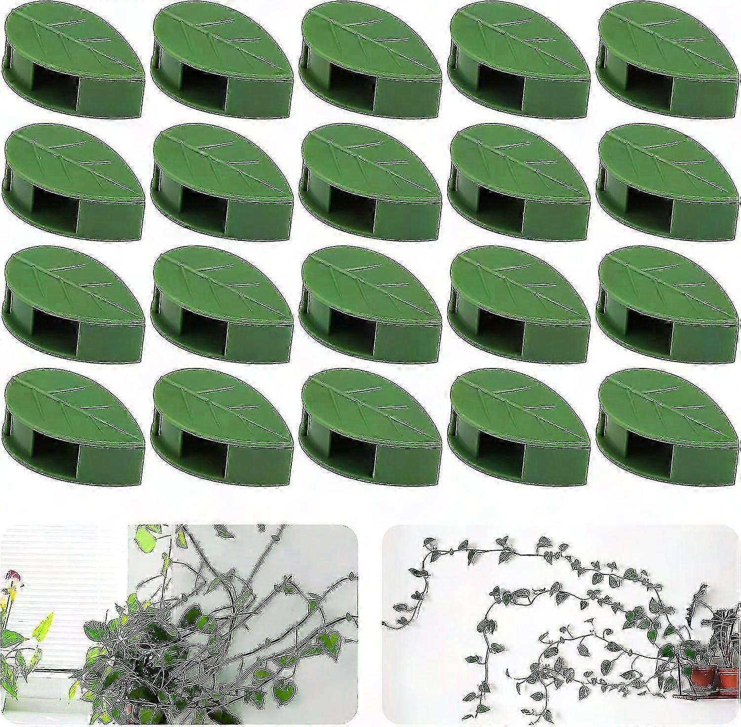 50pcs Invisible Plant Climbing Wall Fixture Clips - Self-Adhesive Vine Support Hooks | Leaf Shape, Green | Durable Plastic - Indoor Plant Organiser