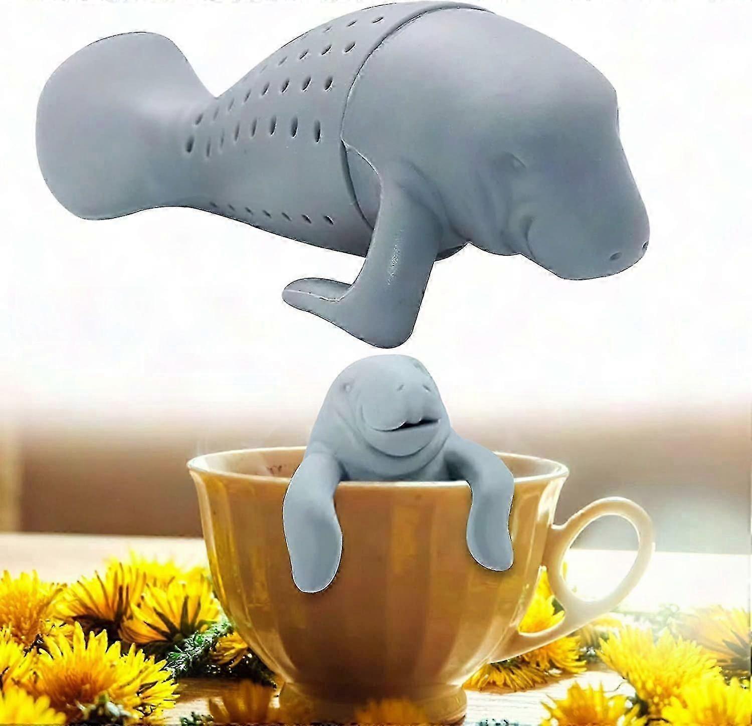 Cute Manatee Silicone Tea Infuser - Novelty Loose Leaf Steeper for Mugs | Food Grade Silicone, Grey, BPA Free | Perfect Gift for Tea Lovers
