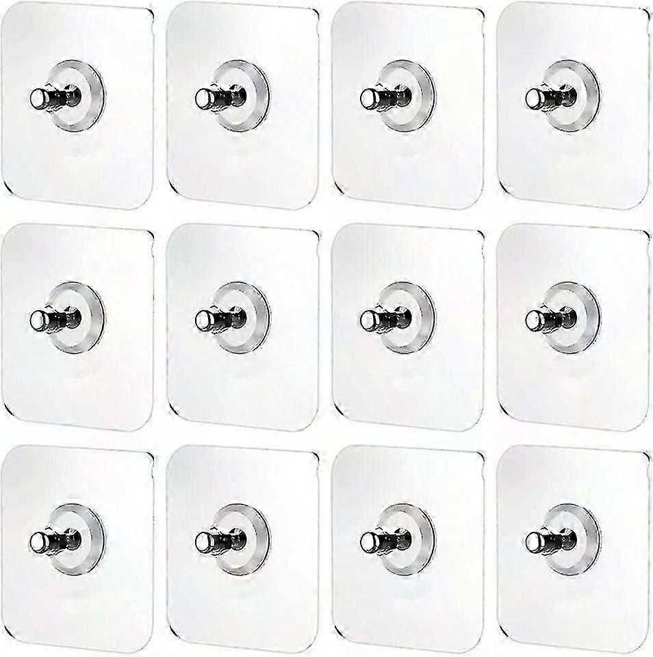 12-Pack Self-Adhesive Wall Hanging Screws - 7x7cm Transparent Base | No-Drill Installation | Heavy Duty Sticky Hooks for Kitchen & Bathroom