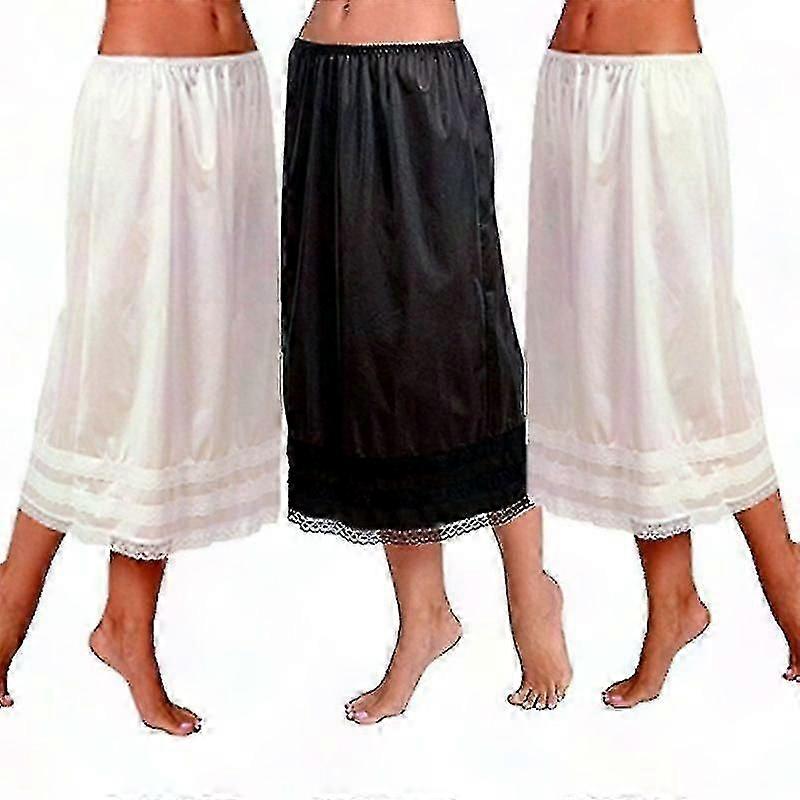Women's Lace Trim Underskirt - Long Petticoat Safety Skirt Layer | Soft Lightweight Fabric, Black & White | Comfortable Under-Dress Slip