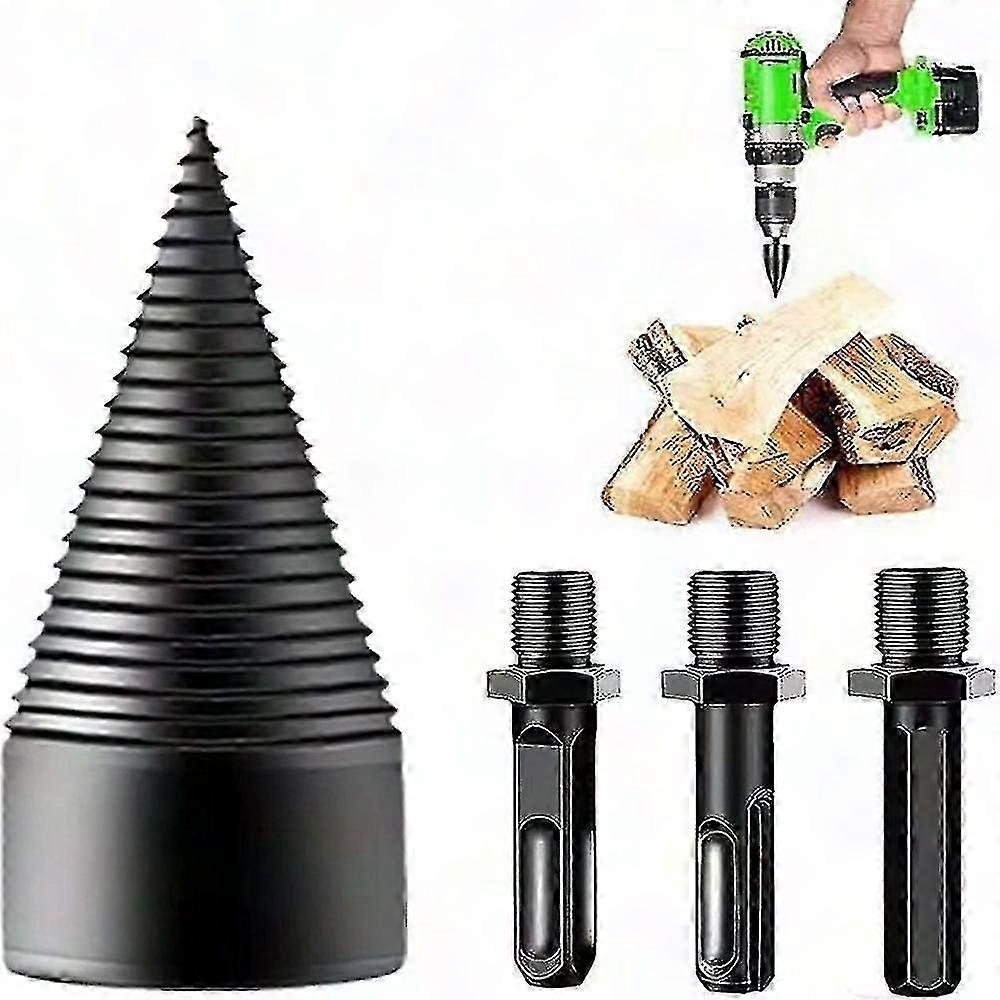 Heavy Duty Wood Splitter Drill Bit - 4pcs Set with 32mm Cone & Multi-Shank Adapters | Carbon Steel - Efficient Log Splitting Tool for Firewood