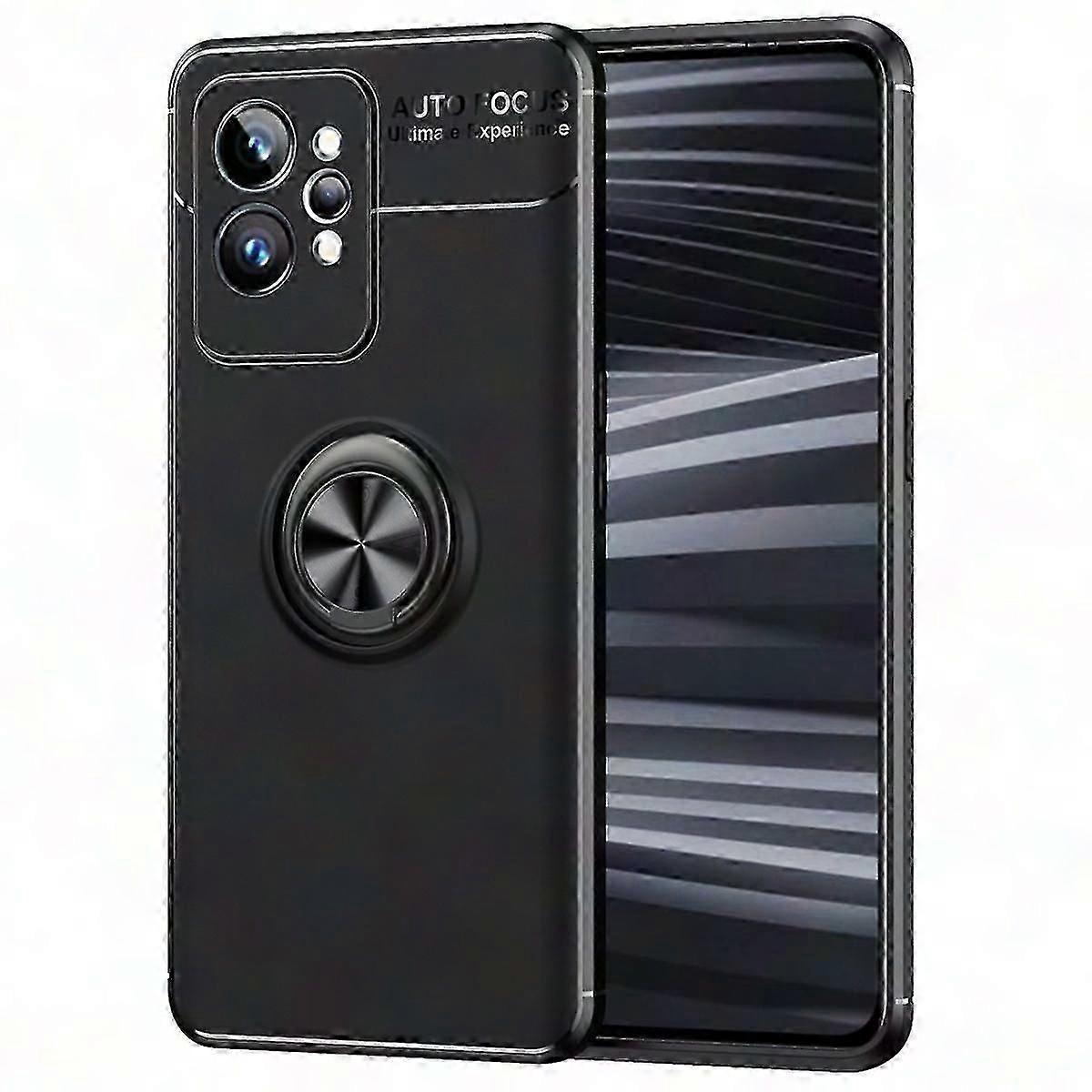 Realme GT2 Pro Protective Case - Flexible TPU Phone Cover with Ring Kickstand - Shockproof Silicone, Black - Slim Fit Design with 360 Stand