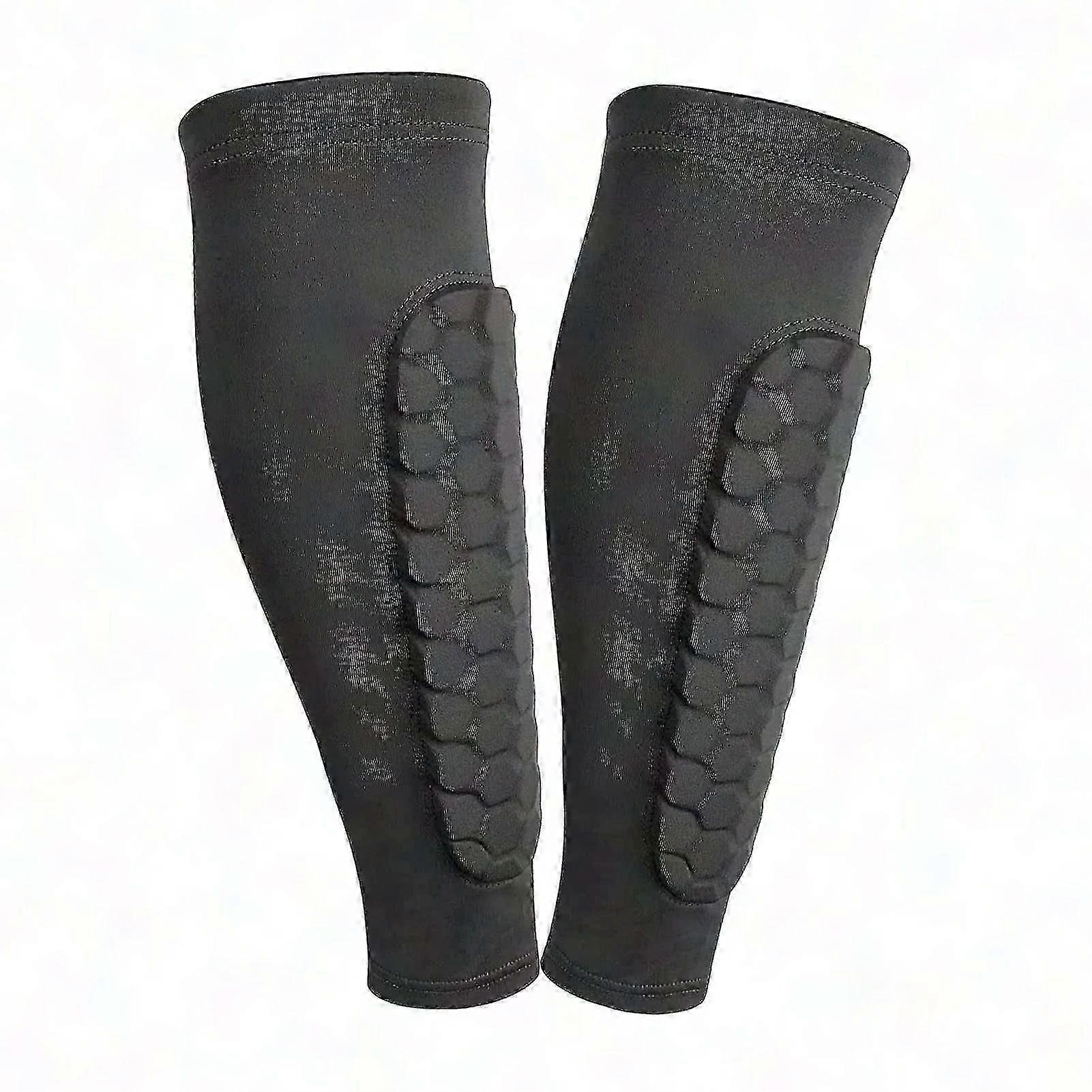 Professional Soccer Shin Guards - Honeycomb Compression Calf Sleeves | Breathable Fabric, Black, 1 Pair | Protective Gear for Football Sports