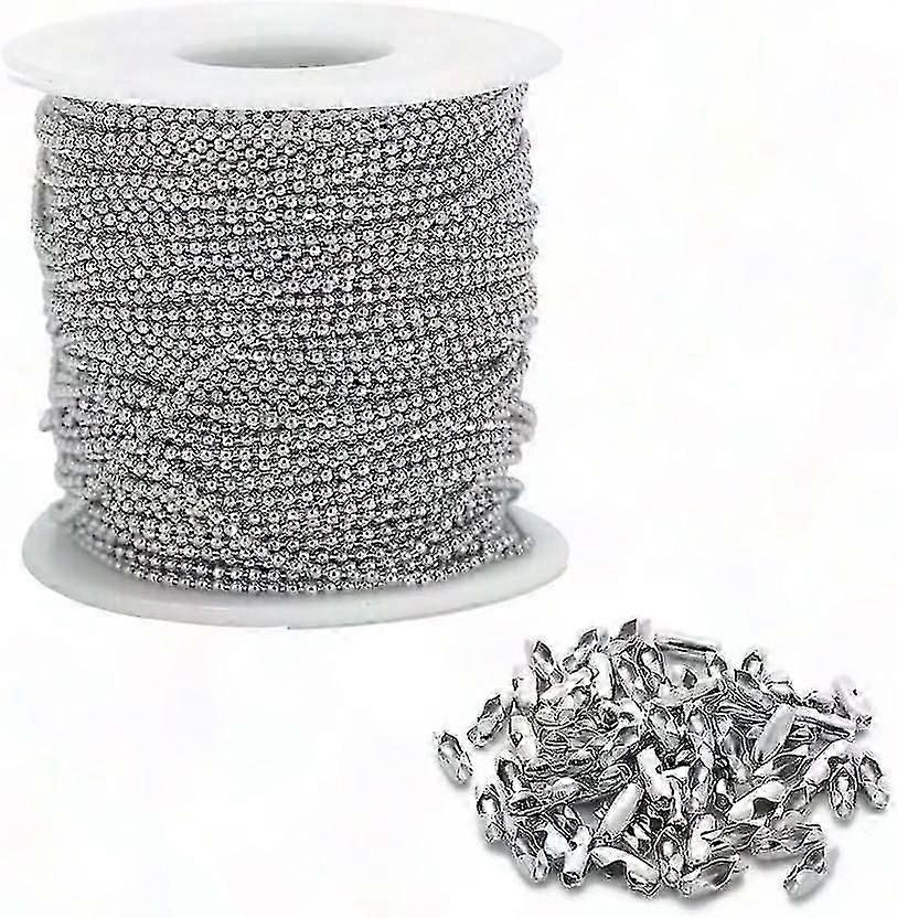 32 Feet Stainless Steel Ball Bead Chain with 50 Connectors | 2.4mm Diameter Silver Roller Chain - DIY Jewellery Making & Fan Pull Cord Kit