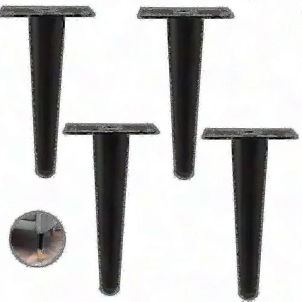 Set of 4 Metal Furniture Legs - Heavy Duty Straight Sofa Feet | Tapered Steel, Black, Universal Fit | Ideal for DIY Cabinets, Beds & Tables