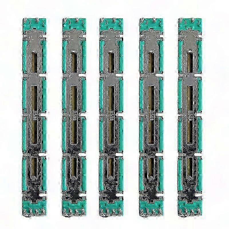 5pcs 75mm Mixer Fader Potentiometer - Straight Slide Control Switch | A20k B20k B50k Options, Silver & Green | Compatible with Behringer Soundcraft