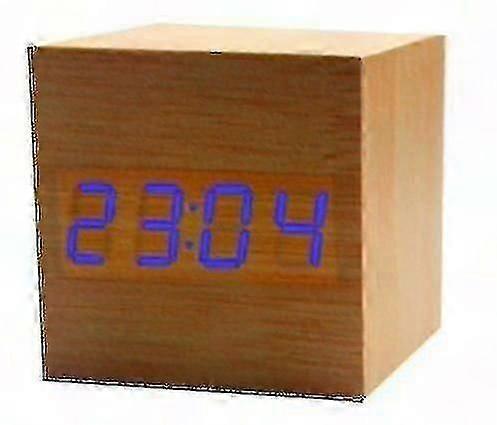 Modern LED Cube Alarm Clock - Sound Activated Digital Timber Display with Time, Date & Temperature - Stylish Bedside Table Decor Gift