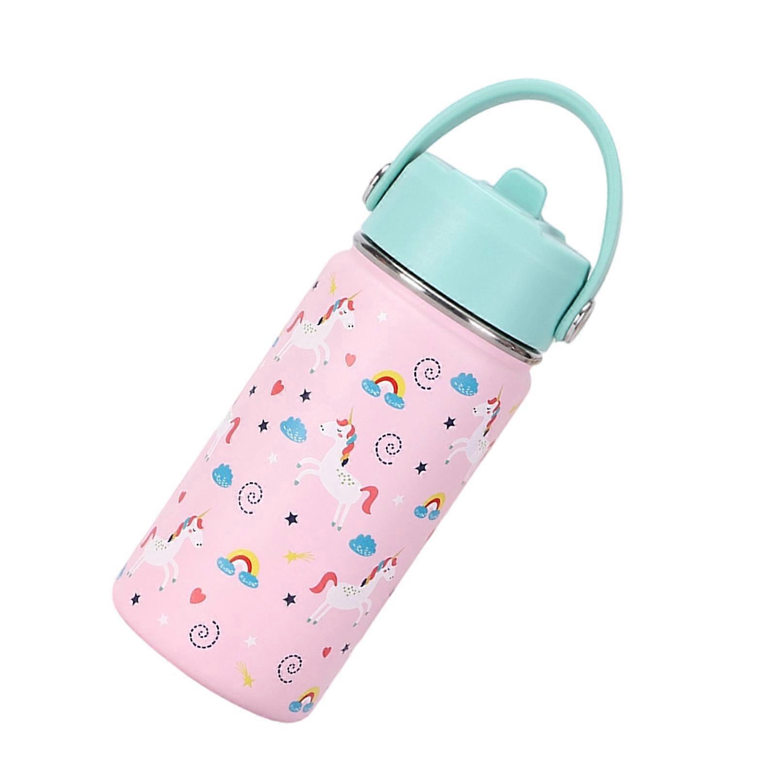 Wide Mouth Thermal Stainless Steel Water Cup Cartoon Handle Straw Tumblers Water Bottle for Outdoors 5