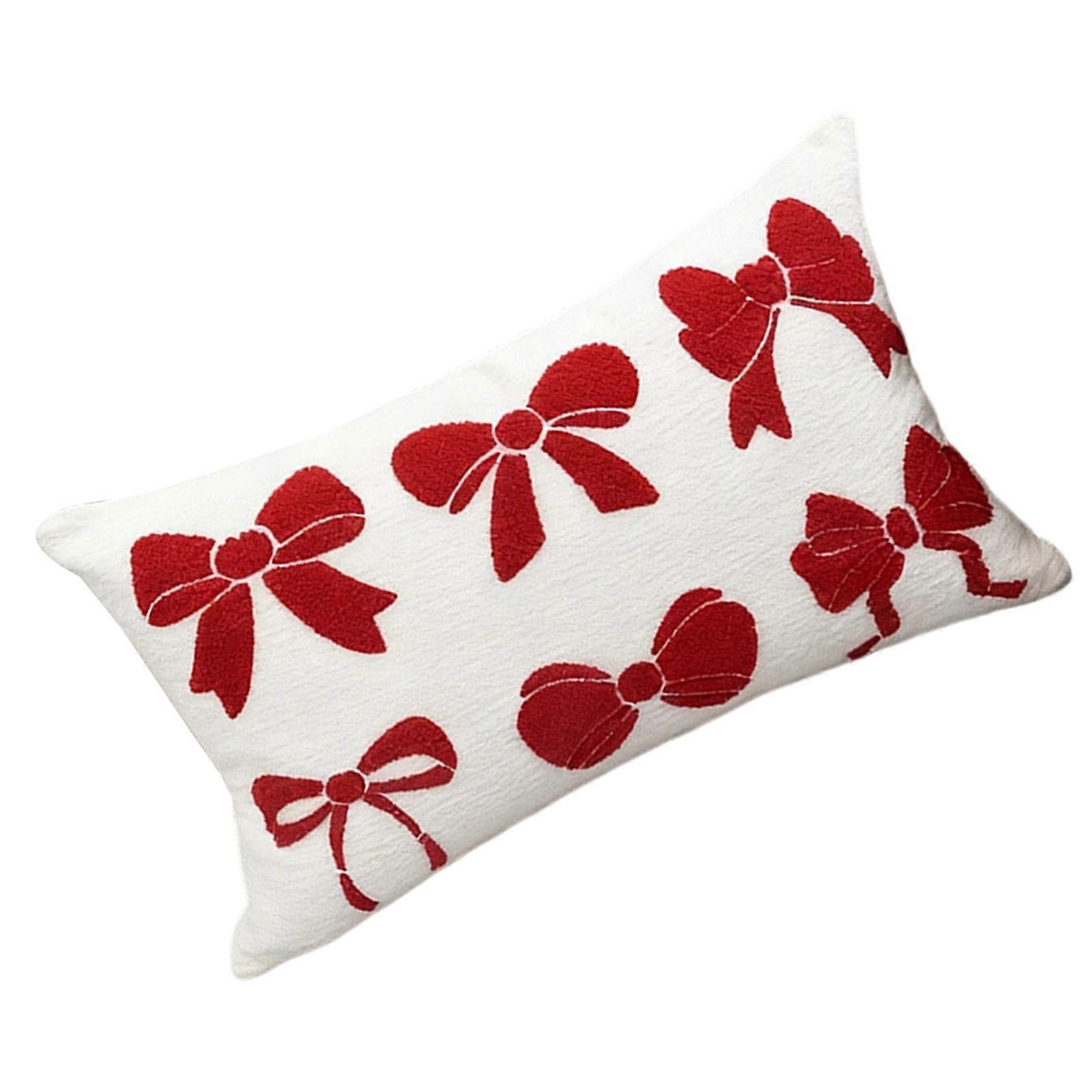 Multipurpose Pillow Case with Tufted Embroidery Bows Detail Holiday Decorative Cushion Cover for Modern Interior Styling 30x50CM Burgundy