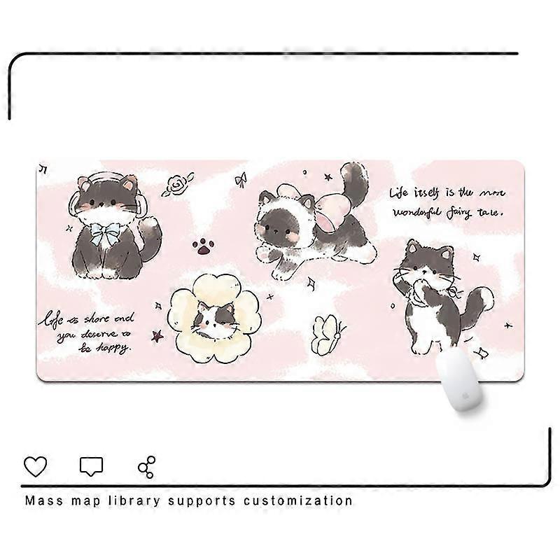 Cute Cartoon Cat Mouse Pad Extra Large Non-Slip Desk Mat Gaming &Office XXL Keyboard Mousepad with Stitched Edges